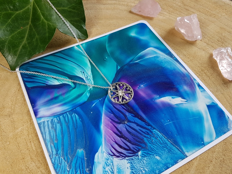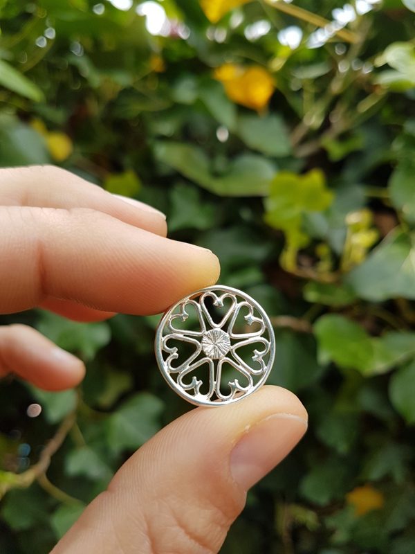 Deze ronde vorm ga je steeds vaker terug zien in mijn Zilveren Symbolische Kracht Sieraden. Ik werk graag met ronde vormen deze staan voor mij o.a. voor vrouwelijkheid, stroming en beweging. In een Mandala begin je vanaf de punt in het midden. Vanuit de kern waar alles uit ontstaat. Het centreren ‘Ik Ben’. Ik werk vanuit mijn gevoel, hart & intuïtie en tijdens het creatieproces plaats ik de Symbolen binnen in de ruimte van de cirkel. Geef ik ze een plek, verbind ik ze met elkaar tot één geheel.